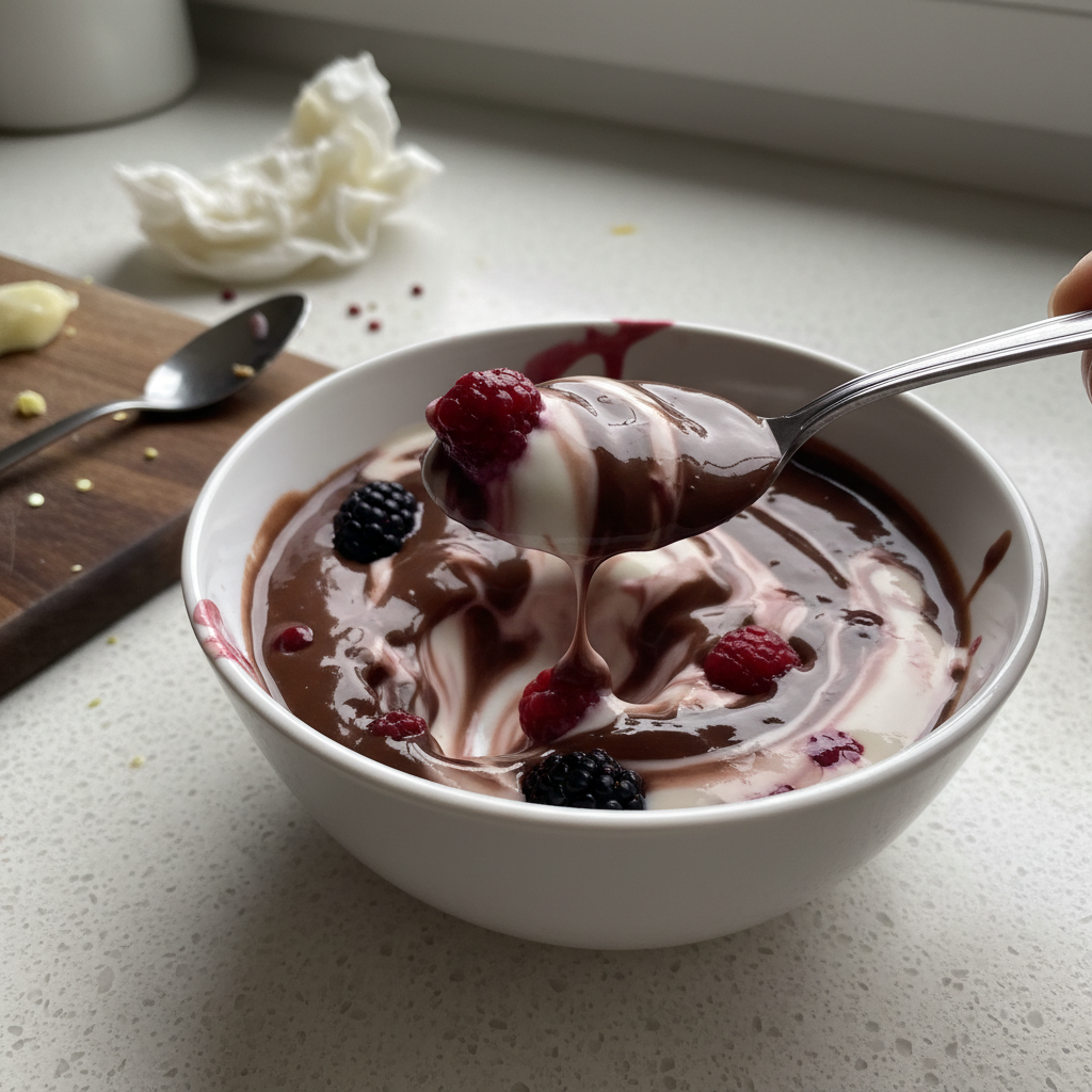 End the short story naturally. Ingredients 1 cup plain yogurt 1/2 cup chocolate chips 2 tablespoons honey 1/2 cup mixed berries 1/4 cup crushed cookies How to Make It Melt the chocolate chips in the microwave. Stir the melted chocolate into the yogurt. Add the honey and mix well. Spoon the mixture into serving bowls. … Read more