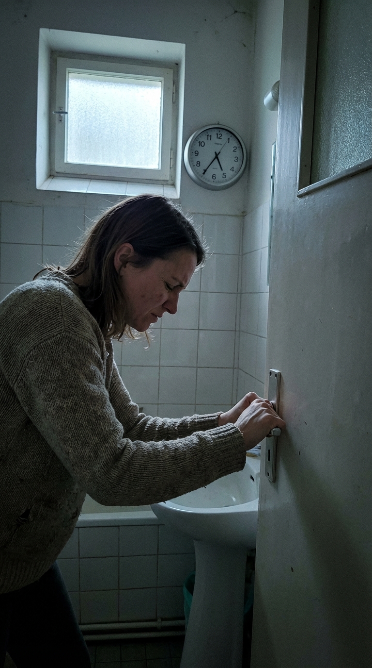 The bathroom door was shut tight, and I could hear my mother-in-law’s footsteps fading down the hallway. The handle felt cold in my palm, refusing to turn, as if the very metal conspired against me.