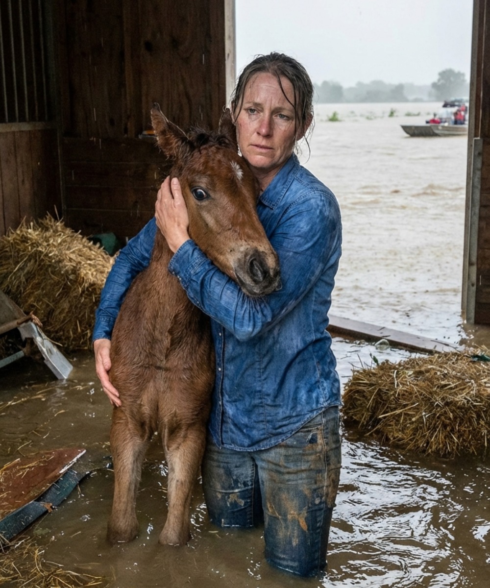 The floodwaters kept rising, but she refused to abandon the frightened young filly.